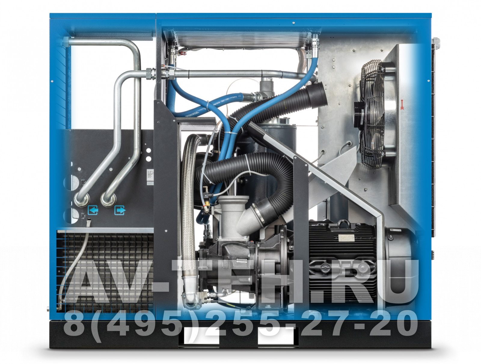 • Доохладителя – радиатора в котором сжатый воздух охлаждаются потоком воздуха, забираемым из окружающей среды специальным вентилятором, находящимся внутри установки